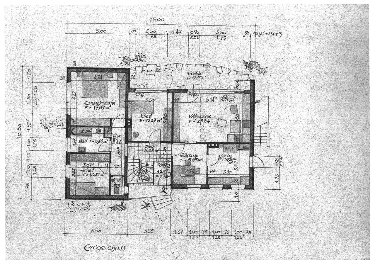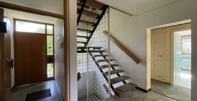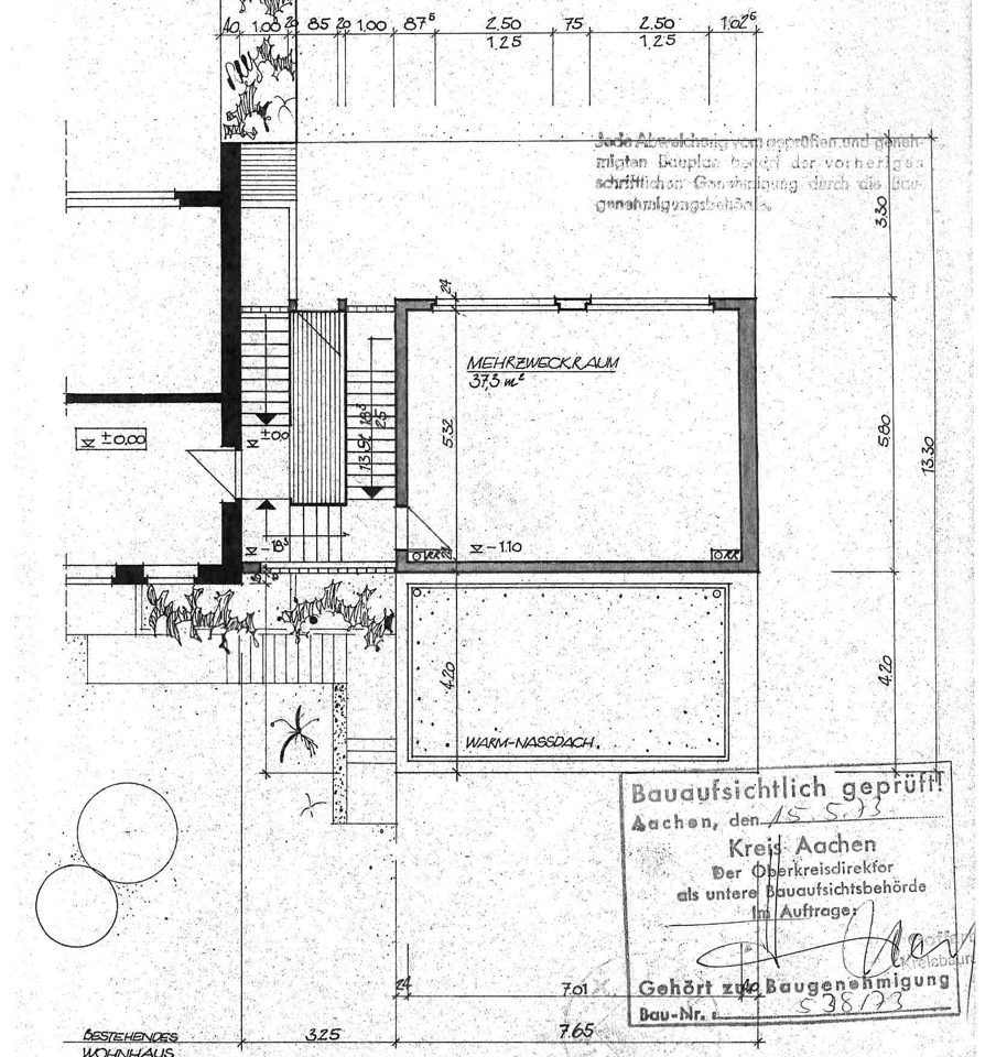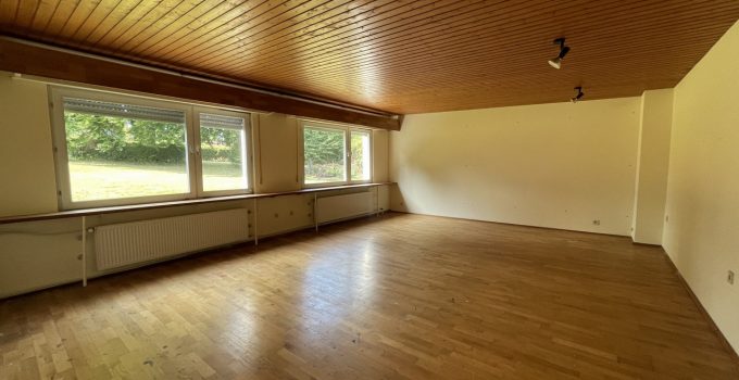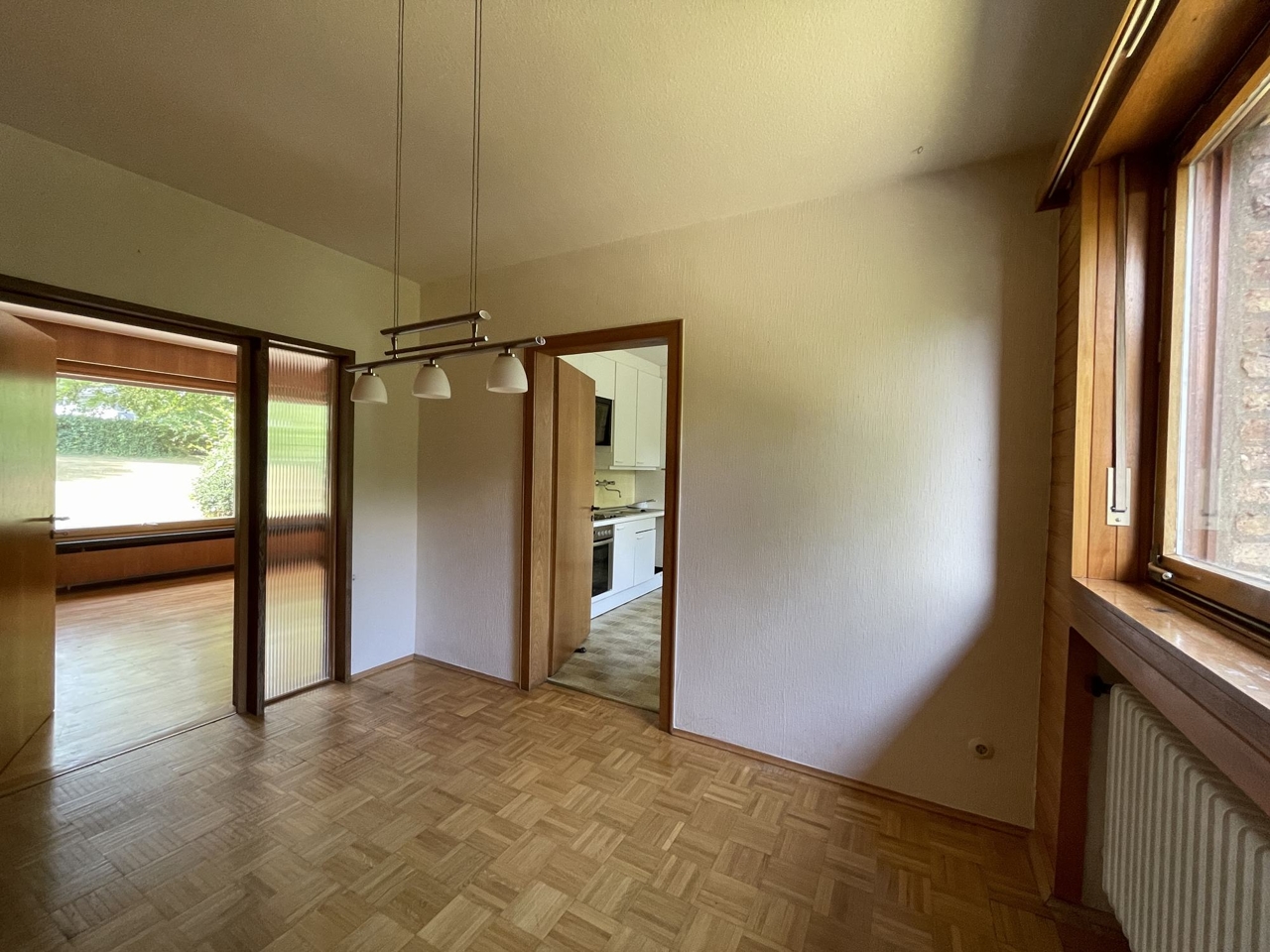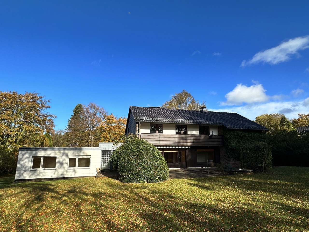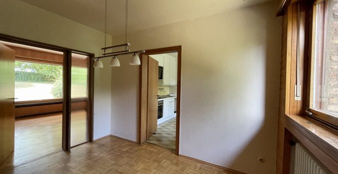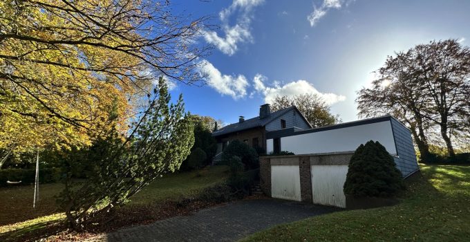 Ein Architektenhaus mit tollen Elementen im Bauhausstil, noch dazu in bester Lage von Roetgen: Direkt am Wald steht dieses 1958 erbaute Objekt auf wunderschönem und großen Grundstück! Großzügig gestaltet sich das Erdgeschoss des Hauses mit circa 112 m². Neben dem großzügigen Wohnbereich mit Zugang zur Terrasse befinden sich hier auch Esszimmer, Küche, ein Arbeitszimmer, zwei Schlafzimmer, sowie ein Bad, WC, sowie ein kleiner Flur und die offen gestaltete Diele. Weitere circa 47 m² bewohnen Sie im Obergeschoss, zur Zeit gestaltet als Einliegerwohnung: Wohnzimmer, Küche, Flur, Bad und WC sowie Schlafzimmer und Diele. Darüber hinaus befinden sich hier neben einem geräumigen Trocken- und Speicherraum ein weiteres ausgebautes Zimmer mit circa 22 m², das als Schlafzimmer mit Ankleideraum verwendet wurde und in der angegebenen Wohnfläche nicht enthalten ist. Das gesamte Haus ist unterkellert. Zusätzlich gibt es einen Anbau von 1973, der neben einem Treppenhaus über einen circa 37 m² großen Mehrzweckraum und eine großzügige fast 67 m² große Doppelgarage verfügt. Das Objekt steht auf einem ca. 2.400 m² großen, wunderschönen Grundstück, das über zwei Zufahrten verfügt und eine Straßenfront von ca. 36 Metern hat.