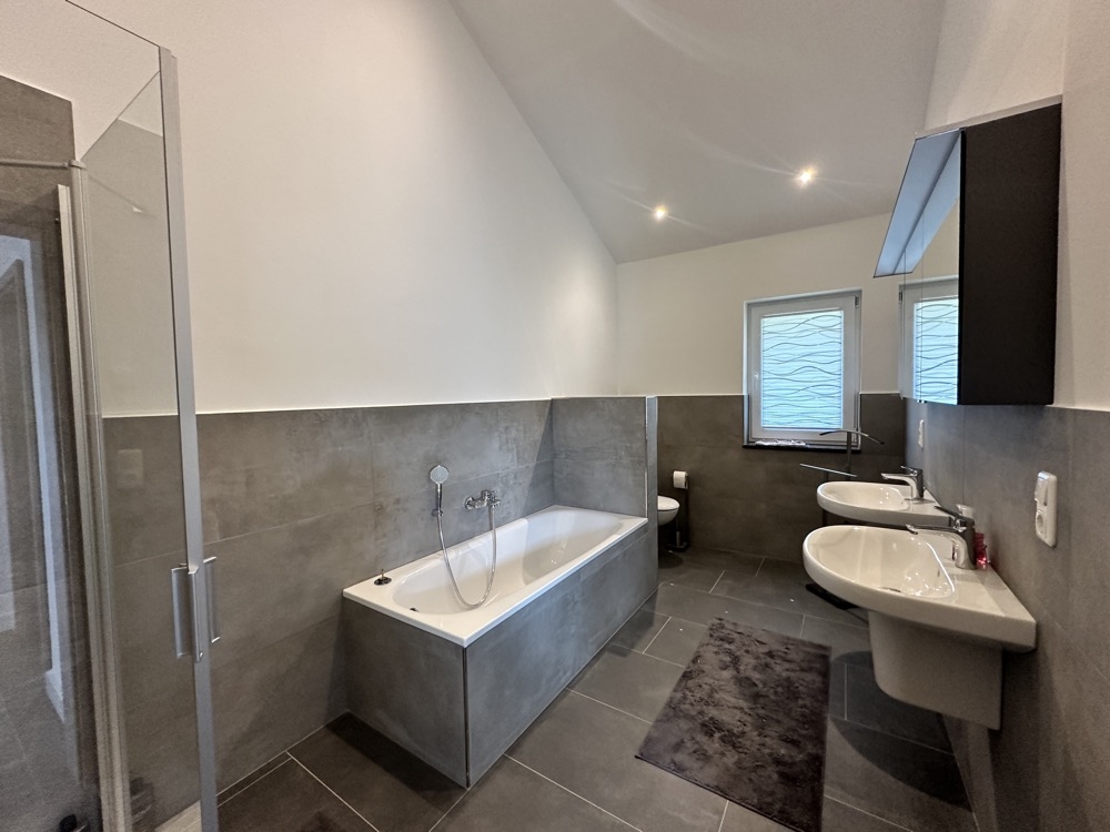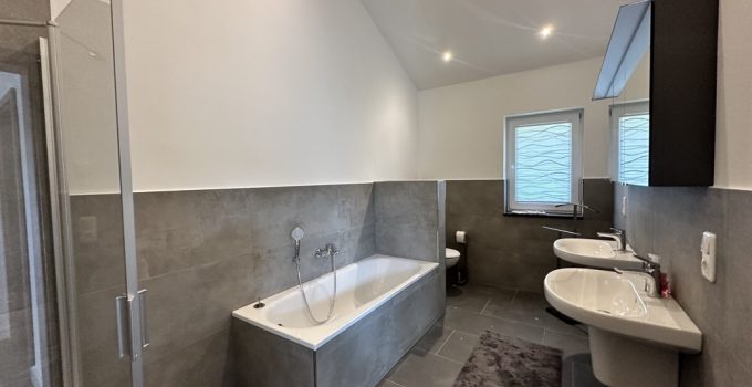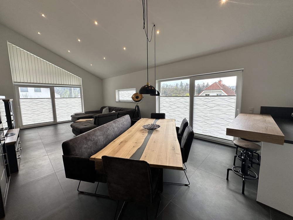 Die hochwertige Ausstattung umfasst unter anderem: Italienische Fliesen im Großformat (1x1 Meter) in allen Räumen; Badezimmer mit Dusche, Badewanne und Doppelwaschbecken; Drei-Fach-Verglasung für optimale Isolierung; Energiesparende Bauweise aus Holz; Moderne Pelletheizung; Überdachte Süd-Terrasse sowie eine zusätzliche West-Terrasse mit herrlicher Aussicht.