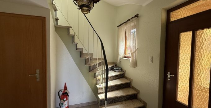 Dieses gepflegte Wohnhaus aus dem Jahr 1962 bietet auf einem großzügigen Grundstück von ca. 988 m² vielfältige Nutzungsmöglichkeiten – ob als Mehrgenerationenhaus, zur Vermietung oder zur Kombination aus Wohnen und Arbeiten. Die Immobilie eignet sich sowohl zur Nutzung als Einfamilienhaus mit viel Platz, als auch für zwei bis drei separate Wohneinheiten. Das Gebäude ist pflegeleicht verklinkert, voll unterkellert und verfügt über eine Doppelgarage hinter dem Haus. Wohnfläche und Aufteilung: Die Gesamtwohnfläche beträgt ca. 192,55 m², verteilt auf drei Ebenen: Erdgeschoss (ca. 74,95 m²): Küche mit Zugang zum Garten und angrenzendem Abstellraum, Badezimmer mit Dusche, Wohnzimmer sowie zwei Schlafzimmer. Obergeschoss (ca. 72,23 m²): Küche mit Balkonzugang und Abstellraum, Badezimmer mit Wanne, Wohnzimmer mit Anschlussmöglichkeit für einen Holzofen sowie ein großzügiger Schlafraum (ursprünglich zwei Zimmer). Dachgeschoss (ca. 45,36 m²): Kleine Einheit, die sowohl eigenständig als Wohnung genutzt als auch mit dem Obergeschoss verbunden werden kann. Hier befinden sich drei Schlafräume und ein weiteres kleines Bad. Außenbereich: Das Highlight ist der große Garten – ein Ort zum Entspannen, Spielen oder Gärtnern, der durch die Größe vielfältige Möglichkeiten bietet. Die hinter dem Haus gelegene Doppelgarage rundet das Gesamtpaket ab.