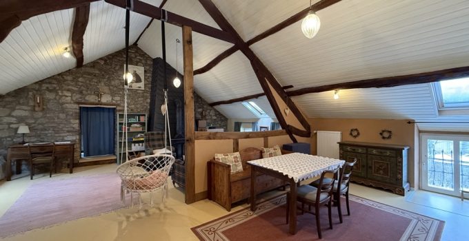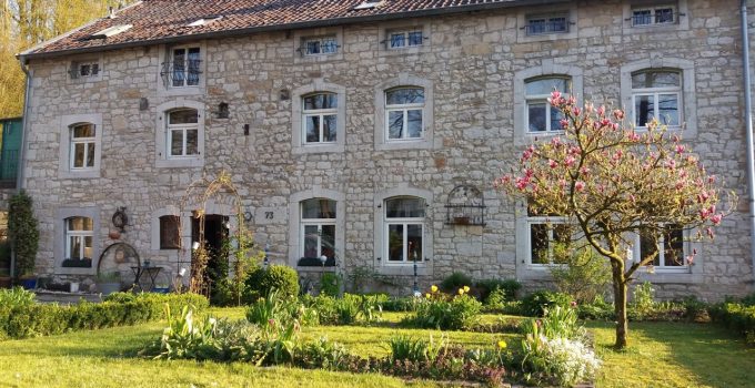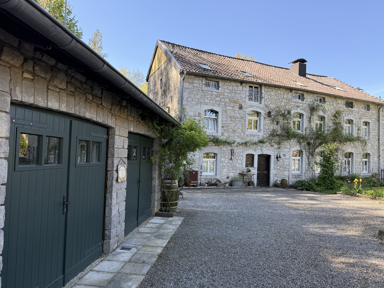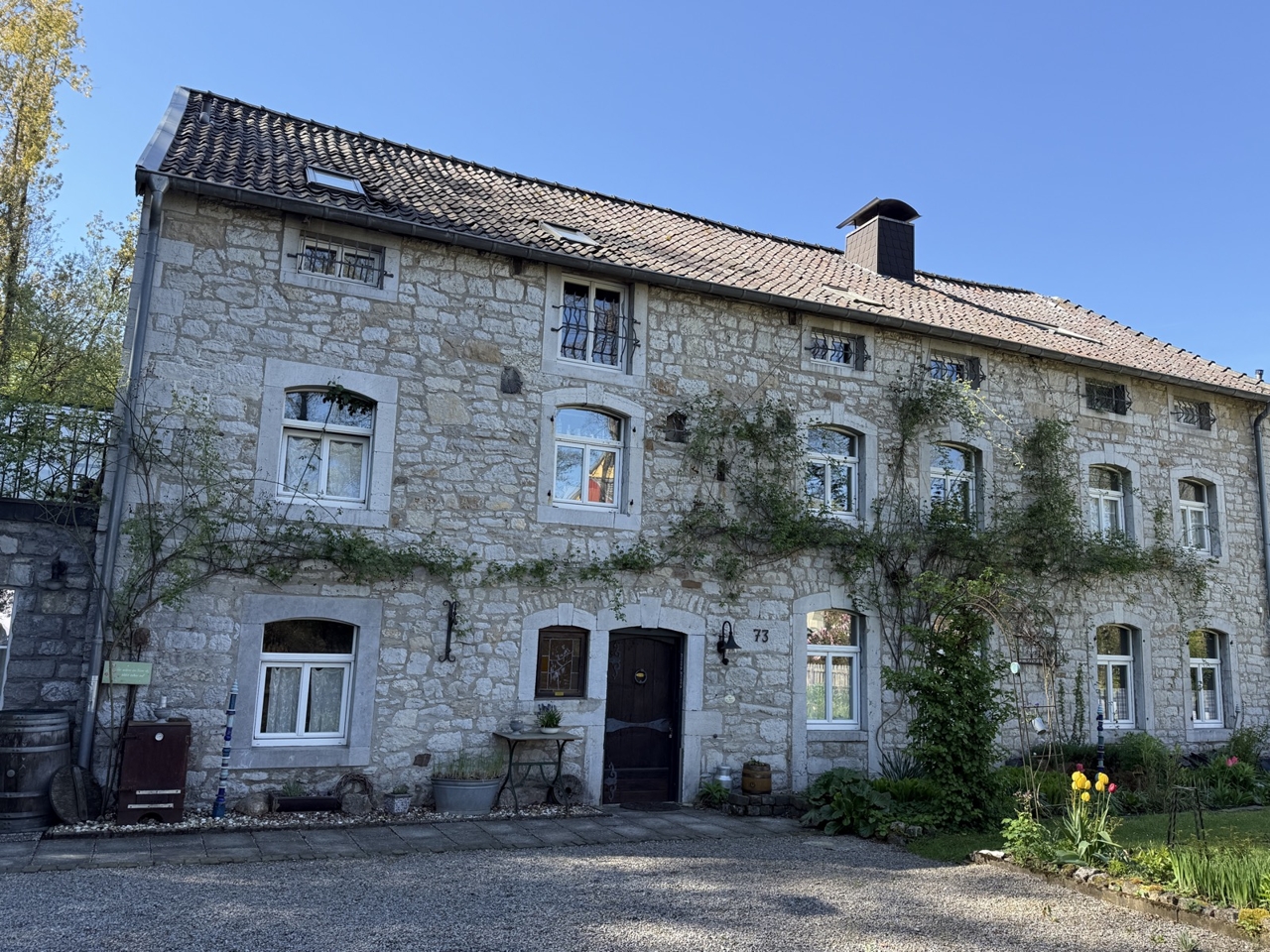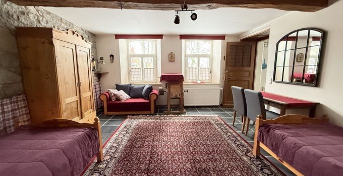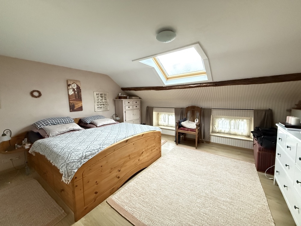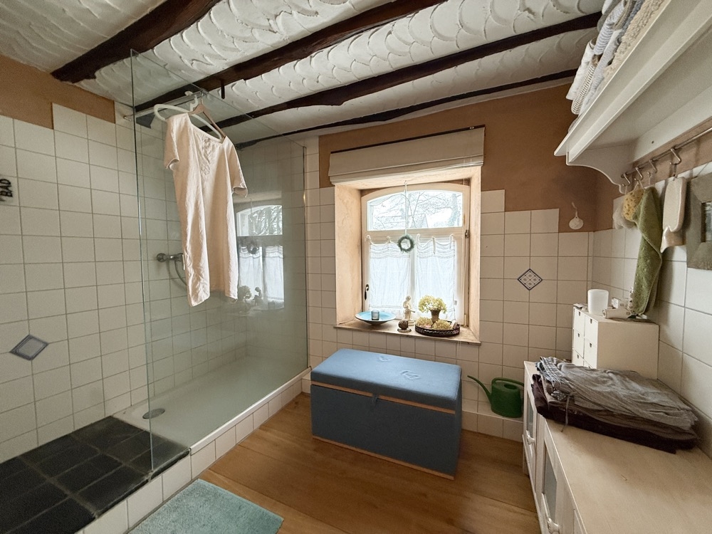 Dieses außergewöhnliche, denkmalgeschützte Bruchsteinhaus im idyllischen Aachen-Hahn verbindet historisches Flair mit einer vielseitigen Nutzungsperspektive. Das Anwesen, bekannt als ehemalige „Hahner Mühle“, wurde Ende des 18. Jahrhunderts errichtet und in den vergangenen Jahrzehnten umfassend saniert sowie fortlaufend instand gehalten. Heute präsentiert sich die Immobilie vor allem als großzügiges Einfamilienhaus mit separater Einliegerwohnung. Dadurch eignet sich das Haus ideal für alle, die stilvoll und großzügig wohnen und zugleich zusätzliche Flächen flexibel nutzen möchten – etwa für Mehrgenerationenwohnen, Arbeiten von zu Hause oder die Vermietung einer abgeschlossenen Einheit, beispielsweise als Ferienwohnung. Besonders reizvoll ist die Kombination aus historischem Charakter, individueller Architektur und den bereits vorhandenen separaten Zugängen zu den einzelnen Bereichen. Terrassen, Gartenflächen und der liebevoll gestaltete Innenhof verleihen dem Anwesen dabei eine besondere Atmosphäre. Raumaufteilung Untergeschoss / Einliegerwohnung (ca. 127 m²) Das Untergeschoss ist von der Vorderseite des Hauses ebenerdig zugänglich und bietet einen eigenständigen, charmanten Wohnbereich mit besonderem Ambiente. Hier befinden sich zwei Schlafzimmer, zwei Bäder, ein Essbereich mit kleiner Küche sowie weitere Nebenräume und ein historischer Gewölbekeller. Durch den sichtbaren Bruchstein, die besondere Raumwirkung und den separaten Zugang bietet sich diese Ebene hervorragend als Einliegerwohnung an. Ebenso ist eine Nutzung zur Ferienvermietung gut vorstellbar. Der Bereich wird derzeit bereits an Feriengäste vermietet; nähere Informationen zu den bisherigen Einnahmen können auf Anfrage zur Verfügung gestellt werden. Obergeschoss und Dachgeschoss / Hauptwohnung (ca. 200 m²) Die Hauptwohnung ist durch die Hanglage von der Rückseite des Hauses ebenerdig erreichbar und erstreckt sich über das Ober- und Dachgeschoss. Im Obergeschoss bildet der großzügige Wohn-Essbereich mit Kaminecke den Mittelpunkt des Wohnens. Von hier aus besteht direkter Zugang zur Terrasse und in den Garten. Ergänzt wird diese Ebene durch die Küche, das Badezimmer sowie zwei weitere Zimmer. Über eine Treppe gelangt man in einen weiteren Schlafbereich im Dachgeschoss. Im Dachgeschoss steht zusätzlich ein großer, offener Wohnbereich mit integrierter Küche und Bad zur Verfügung. Je nach Lebenssituation lässt sich dieser Bereich unterschiedlich nutzen, etwa als privater Rückzugsort, Atelier, Gästebereich oder als abgetrennter Wohnteil für ältere Kinder oder Familienangehörige. So entsteht insgesamt ein Wohnkonzept, das Großzügigkeit und Flexibilität auf seltene Weise miteinander verbindet.