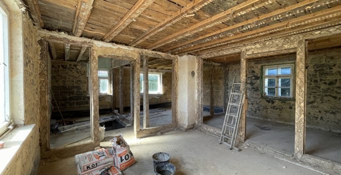 In den letzten Jahren wurden bereits einige Arbeiten am Haus durchgeführt. So wurde der Keller aufwendig saniert, der komplette Dachstuhl erneuert, gedämmt und neu eingedeckt und das gesamte linke Fachwerhaus wurde entkernt. Auf diese Weise kann der Käufer den guten Zustand des original Fachwerks genau überprüfen und erlebt somit keine Überraschungen. Darüber hinaus hat der Erwerber die Möglichkeit selbst zu entscheiden, wie die Räume aufgeteilt und gestaltet werden. Im rechten Hausteil wurden darüber hinaus die alten Nachtspeicheröfen durch moderne ersetzt, ein neuer Kamin im Wohnzimmer istalliert und Renovierungen der Böden durchgeführt. Einige Fenster wurden ausgetauscht, die meisten sind von 1995. Die Elektrik ist noch auf dem alten Stand. Der Keller verfügt über einen Brunnen.