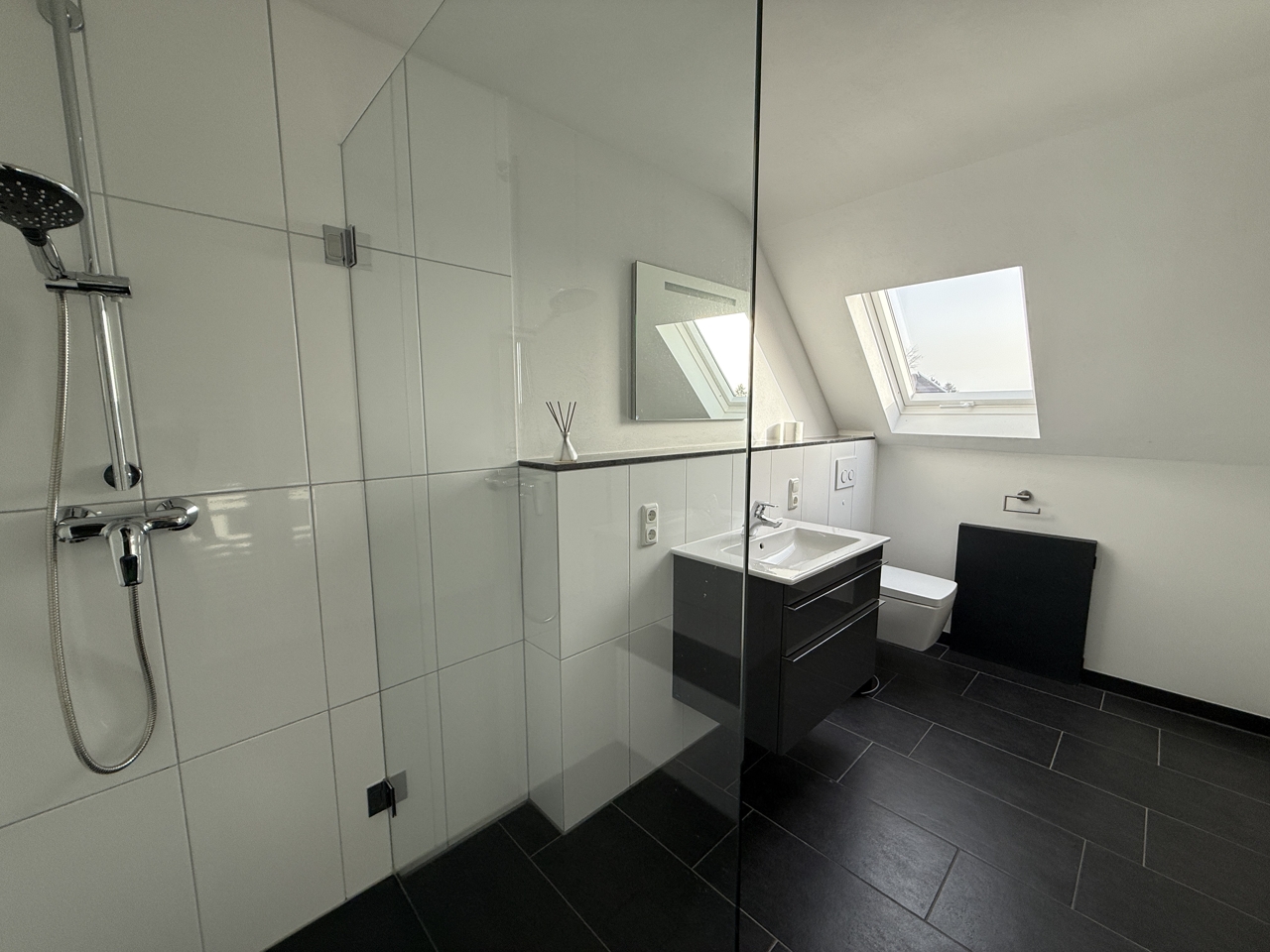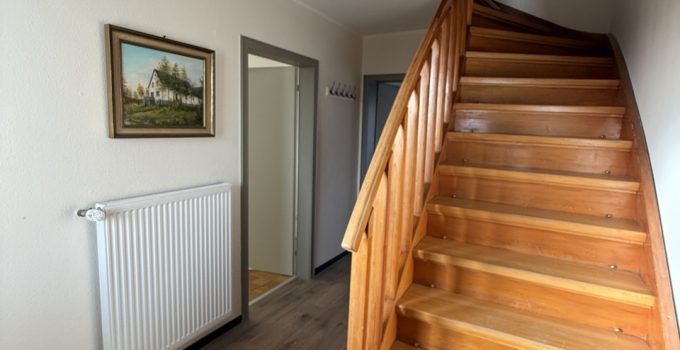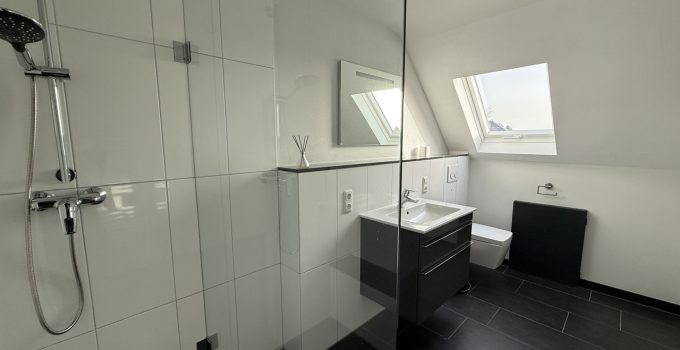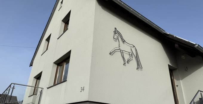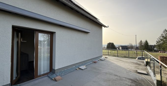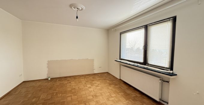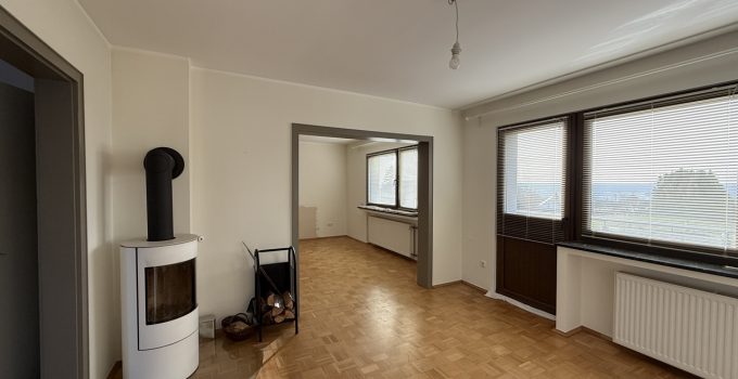 Diese Eigentumswohnung mit ca. 102 m² Wohnfläche befindet sich in einem ehemaligen Bauernhof, der in drei Eigentumswohnungen aufgeteilt wurde. Zum Verkauf steht die vordere Einheit, gelegen im ursprünglichen Wohnhaus (Massivbauweise, Baujahr 1965). Die Wohnung wurde 2015 umfassend saniert und verbindet moderne Details mit dem Charakter älterer Elemente wie z.B. der schönen, alten Holztreppe. Mittelpunkt im Erdgeschoss ist der Wohn-/Essbereich mit altem aufgearbeitetem Parkettboden. Von Küche und Wohnzimmer gelangt man direkt auf die große Südwest-Terrasse, die auf der 2016 errichteten Garage angelegt ist. Im Obergeschoss stehen zwei Schlafzimmer sowie ein sehr modernes Bad mit großer Dusche zur Verfügung. Zusätzlich gibt es einen Dachboden als praktische Abstell- bzw. Nutzfläche. Ein gemeinsamer Waschkeller wird mit den beiden weiteren Eigentümern genutzt. Das Gesamtgrundstück umfasst ca. 2.013 m². Die Nutzung von Garten und Wiese ist laut Teilungserklärung den anderen Wohnungseigentümern zugeordnet.