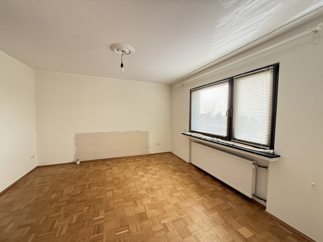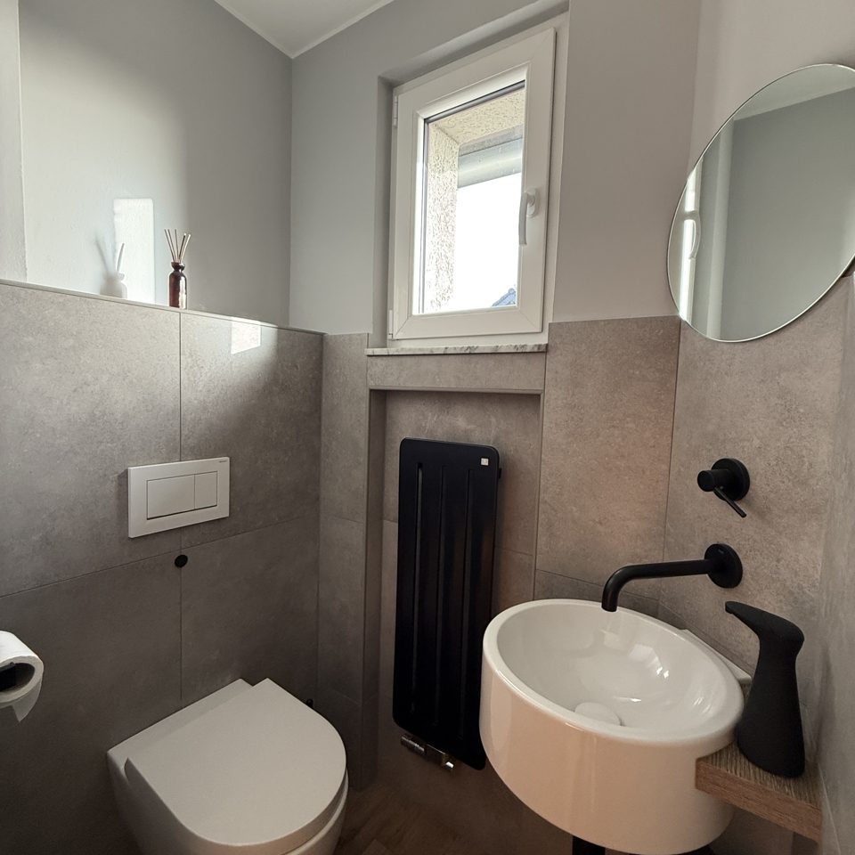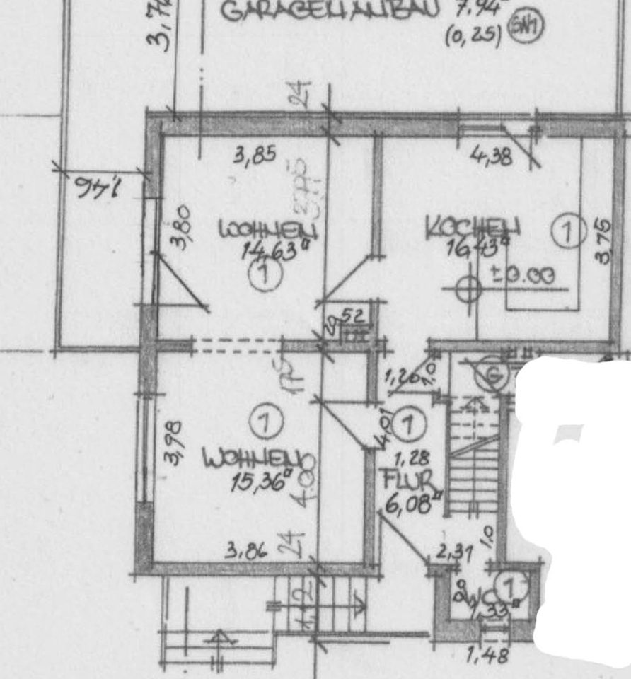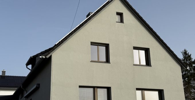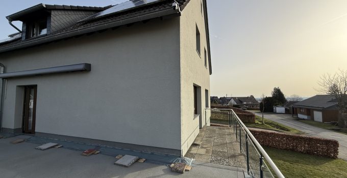 •Baujahr / Bauweise: Massivbauweise, Bj. 1965 •Sanierung: Wohnung 2015 umfassend saniert •Garage: 2015 gebaut, Terrasse auf der Garage in Südwest-Ausrichtung Hinweis: Feuchtigkeitsproblem in der Garage vorhanden, muss noch behoben werden •Heizung: Pelletheizung (2024) •Sanitär: Gäste-WC sehr modern Bad im OG sehr modern, mit großer Dusche •Räume: 2 Schlafzimmer im Obergeschoss, zusätzlicher Dachboden •Fenster / Rollläden: Kunststofffenster (Holzoptik) mit Isolierverglasung, Rollläden im OG vorhanden Hinweis: 2 Fenster im EG sollten erneuert werden •Boden: Wohn-/Esszimmer mit schönem altem Parkett •Fassade / Energie: Wärmedämmverbundsystem •Gemeinschaft: gemeinsamer Waschkeller mit den beiden anderen Eigentümern