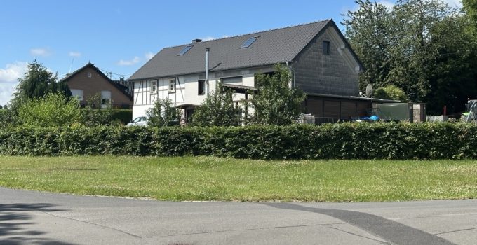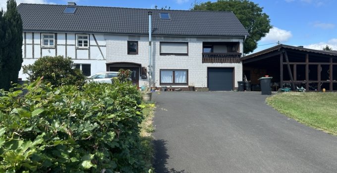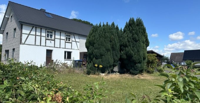 Das Haus liegt in einer ruhigen Straße in Nideggen-Schmidt mit schöner Weitsicht. Bei diesem Gebäude handelt es sich um ein ehemaliges Bauernhaus, das aus einem älteren Fachwerkhaus (links) und einem angebauten neueren Gebäude aus dem Jahr 1968 (rechts) besteht. Der angebaute rechte Teil (Wohnfläche ca. 90 qm) ist gepflegt und wäre sofort bezugsfertig, Im Erdgeschoß des Anbaus befindet sich die Küche, der Wohn-und Essbereich, ein Abstellraum sowie ein Gäste-WC. Von der großen Garage aus ist der direkte Zutritt ins Haus möglich. Zusätzlich gibt es noch ein Carport. Im Obergeschoß befinden sich 2 große Schlafzimmer, ein Durchgangszimmer, ein kleineres Zimmer und ein Bad. Der linke Fachwerkteil des Hauses kann beibehalten werden, jedoch wird eine Kernsanierung erforderlich sein. Hier hat der neue Eigentümer alle Möglichkeiten kreativ zu werden, ob dieser Teil für eine Ferienwohnung, Mehrgenerationenlösung, Vermietung oder sonstiges genutzt werden soll. Im Erdgeschoss könnte ein großzügiger, offen gestalteter Wohn-Essbereich entstehen. Im Obergeschoss besteht die Möglichkeit bis zu drei Zimmer zu schaffen. Im Dachgeschoss und Keller stehen weitere Flächen zur Verfügung. Das Grundstück hat eine Größe von ca. 889 qm. Ein zusätzliches, kleines Baugrundstück mit ca. 330 qm kann auf Wunsch dazu gekauft werden.