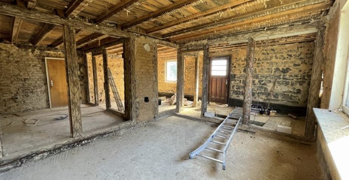 In den letzten Jahren wurden bereits einige Arbeiten am Haus durchgeführt. So wurde der Keller aufwendig saniert, der komplette Dachstuhl erneuert, gedämmt und neu eingedeckt und das gesamte linke Fachwerhaus wurde entkernt. Auf diese Weise kann der Käufer den guten Zustand des original Fachwerks genau überprüfen und erlebt somit keine Überraschungen. Darüber hinaus hat der Erwerber die Möglichkeit selbst zu entscheiden, wie die Räume aufgeteilt und gestaltet werden. Im rechten Hausteil wurden darüber hinaus die alten Nachtspeicheröfen durch moderne ersetzt, ein neuer Kamin im Wohnzimmer istalliert und Renovierungen der Böden durchgeführt. Einige Fenster wurden ausgetauscht, die meisten sind von 1995. Die Elektrik ist noch auf dem alten Stand. Der Keller verfügt über einen Brunnen.